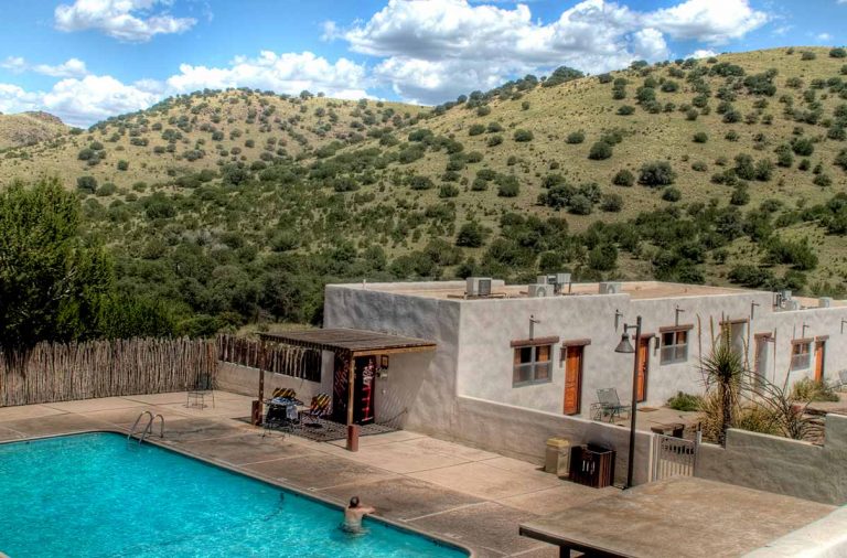 With its white adobe walls, historic aura, and refreshing pool, Indian Lodge is a hidden oasis in West Texas.